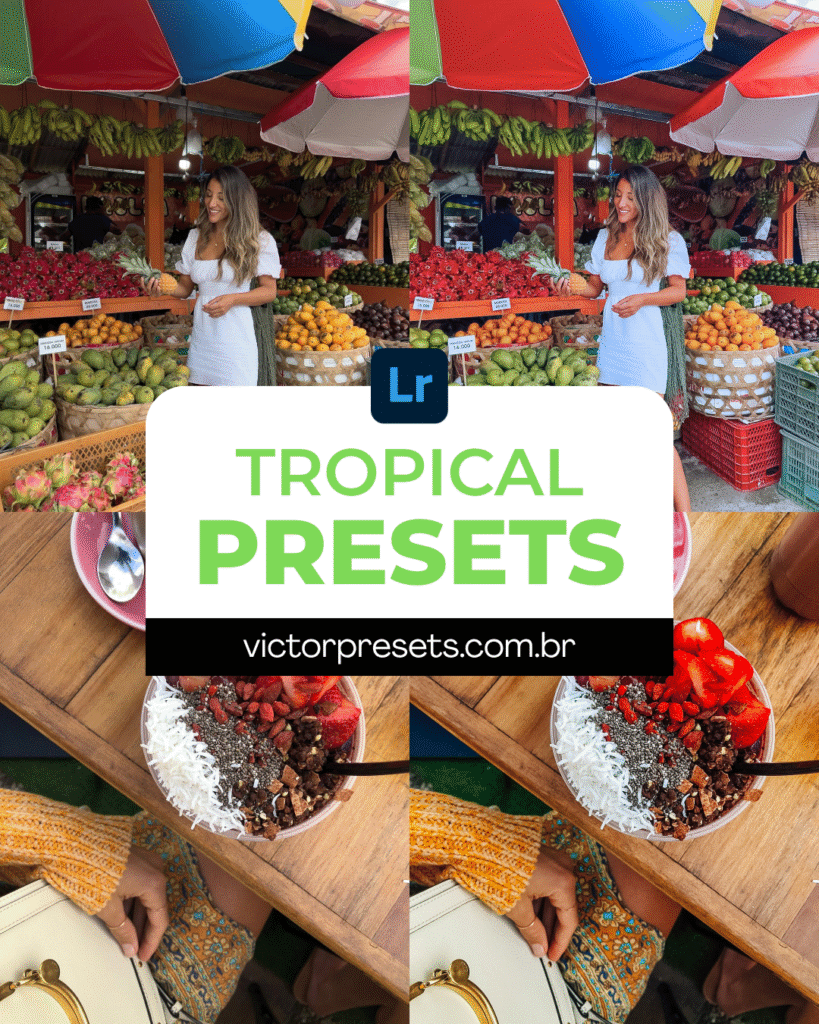 São 06 Presets exclusivos + 06 Lut’s para fotos e vídeos inspirados nos tons alaranjados e no clima tropical, este pack transforma qualquer cenário em segundos — da energia vibrante do verão ao charme nostálgico do estilo vintage.